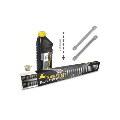 The Touratech Suspension lowering kit consists of fork springs and a matching set of reversing levers. This set includes exchange fork springs and the reversing lever for the shock absorber. This is how we achieve the best possible lowering by -35mm with consistently good driving characteristics BMW G310GS. After the conversion, your suspension will still provide good responsiveness and high safety at the limits. The balance of your motorcycle stays the same.