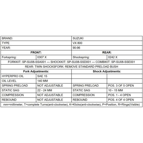 BLACK-T progresif ön & arka yay seti, Suzuki VX 800 (1990 - 1996) (TYP VS51A)
