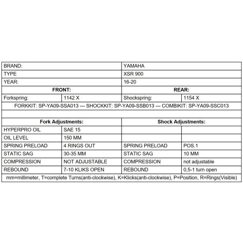 BLACK-T progresif ön & arka yay seti, Yamaha XSR 900 (2016-2020)