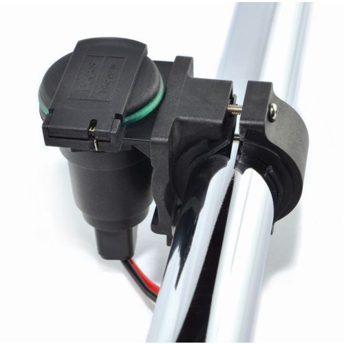 The spring-loaded hinge prevents the lid from flapping in the slipstream and also protects the socket from the elements. The 7.5 A fuse can be fitted wherever you find to be most convenient on the cable. The small hole in the base of the housing cover prevents damp from condensing inside the socket.
