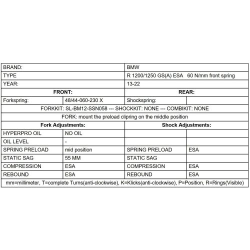 Ön ve arka amortisör yayları LINEER, BMW R1200GS Adv LC / R1250GS Adv 2014-2023 "Orijinal BMW Dynamic ESA için"