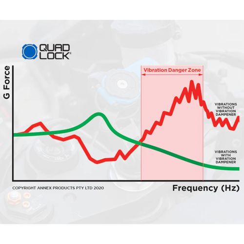 Bazı motosikletlerin titreşimleri yeni akıllı telefonların görüntü sabitlemesini etkileyebilir. Quad Lock® titreşim sönümleyici, akıllı telefonunuzu her türlü motosiklete güvenli bir şekilde takabilmenizi sağlar.