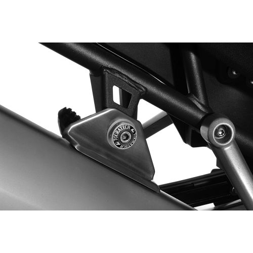 Touratech susturucu bağlantısı kapağı tek parça alüminyumdan işlendi ve susturucu bağlantısına takılan basit vidanın yerini alır. Touratech susturucu bağlantısı kapağı Kırmızı , altın , siyah ve titanyum renk seçenekleriyle sunulan yağ doldurma kapakları , şasi kapakları ve arka maşa rulman kapakları ile kombine edilebilir.