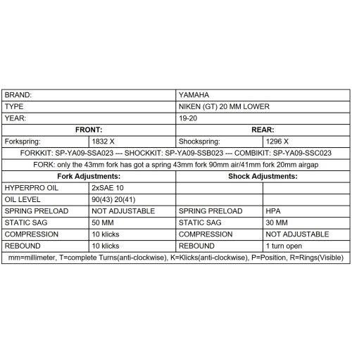 Touratech Suspension alçaltma seti -20mm, Yamaha NIKEN (GT) (2019-2020)