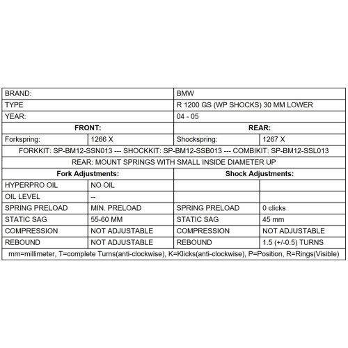 The height lowering kit by Touratech Suspension. The set includes replacement springs for the shock absorber front and rear. This spring set provides you with a sensible reduction in height without affecting the riding properties - at the expense of a little ground clearance. The progressive springs have been designed to match your motorbike perfectly, and offer a tremendous improvement in response and greater safety in extreme situations. Replacing the front and rear springs will lead to a significant improvement in your suspension system. Street legal.