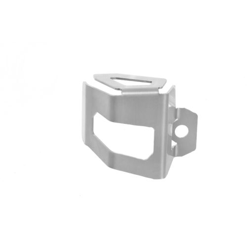 On the BMW the brake fluid reservoir is all too easily accessible, putting it at risk of damage or tampering. Made from laser-cut stainless steel, Touratech’s brake fluid reservoir guard effectively prevents damage and undesired access to the reservoir lid, yet you can still easily see the fluid level. The guard simply bolts onto the existing mounting point.