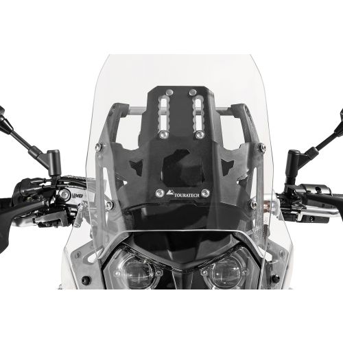 Ayar adaptörü orijinal ekran sabitlemesine vidalanır ve ön camı taşır. Yüksek kaliteli, siyah eloksallı alüminyum alaşımdan üretilen bu bileşen, teknik görünümüyle Ténéré kokpitinin ralli görünümüyle mükemmel bir uyum sağlar. Pro sadece standart gösterge için tasarlanmamıştır, orijinal sabitlemeyi kullanan tüm alternatif göstergelerle de çalışır.