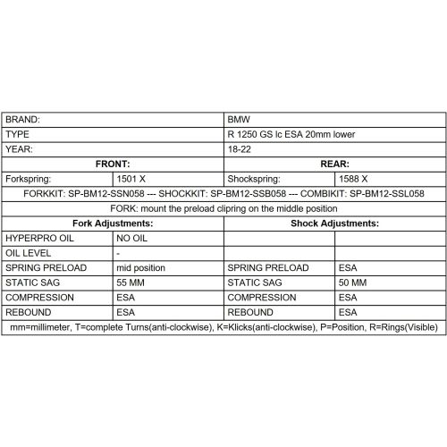 Touratech Suspension alçaltma seti (-20mm), BMW R1250GS ESA (2018 - 2022)