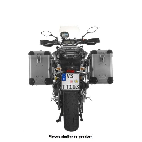 ZEGA Pro alüminyum yan çanta seti, 38/38 litre, siyah paslanmaz çelik taşıyıcı ile, Yamaha MT-09 Tracer